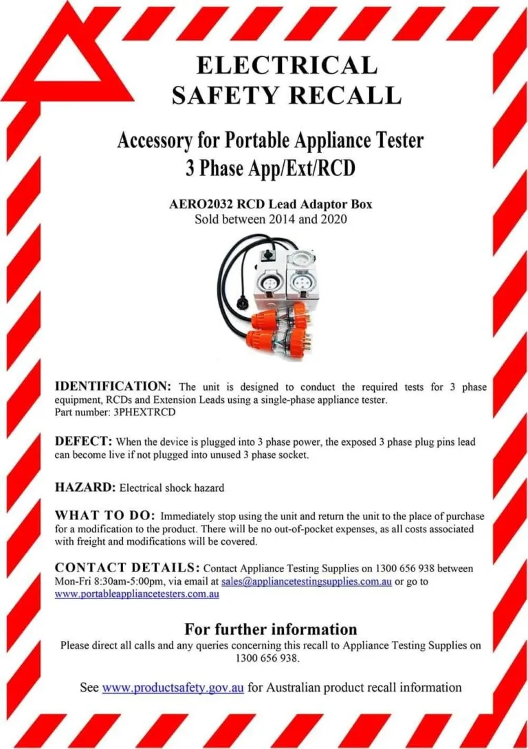 Recently there was an incident in the electrical test n tag industry which, if you have anything to do with the industry, you should be aware of. At Metrotest, safety is our top priority. Recently there was the recall of a product by a test and tag supplier, and it’s a serious recall due to safety concerns.  This product is a 3 phase multi-lead adaptor.